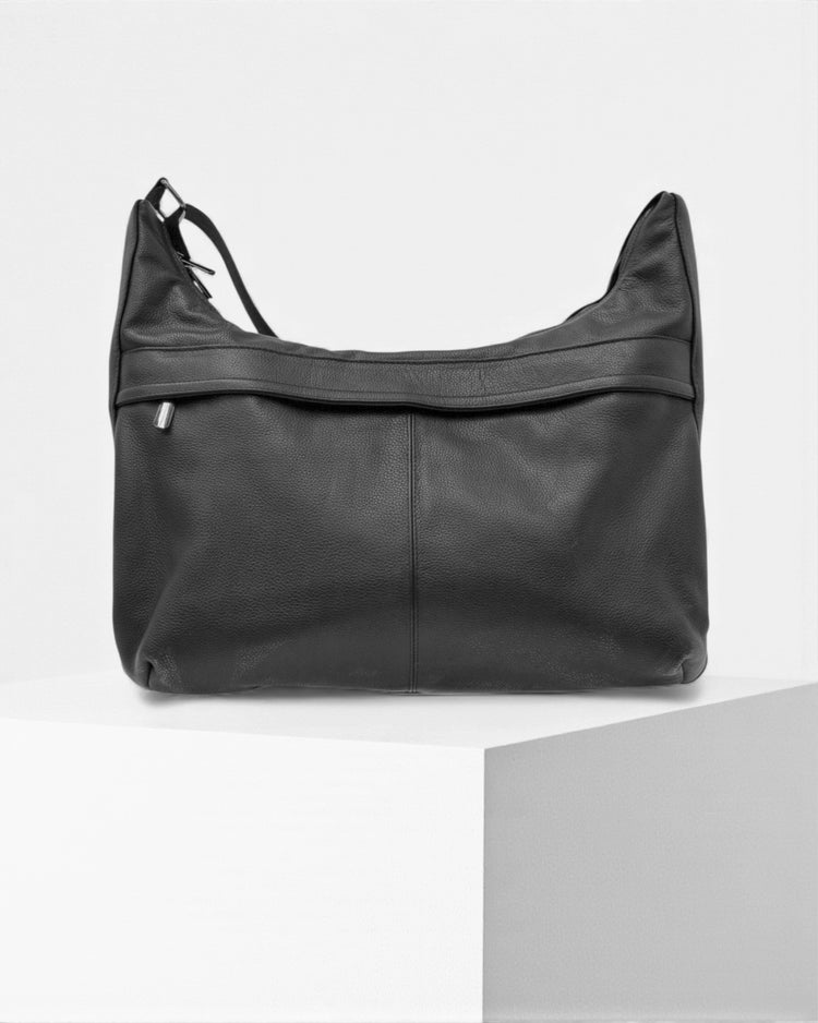 El maletín Michoacán está pensado para quienes necesitan espacio sin perder ligereza ni estilo. Su silueta suave se adapta al cuerpo al llevarlo al hombro, pero mantiene estructura suficiente para cargar libremente documentos, tablet, agenda y todo lo que usas en el día a día. Fabricado en piel de grano natural en tono negro, con herrajes metálicos discretos, es ese punto medio entre bolso relajado y maletín elegante que funciona igual para oficina, viaje o uso diario.